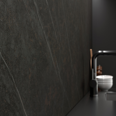 This is a porcelain tile product with ALLURE BLACK stone finish which comes in slabs of dimension 3200X1600mm.