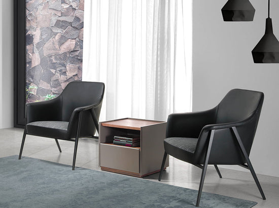- DECORATION AND COMFORT: The straight and simple design of this bedside table makes it a key piece for your stay. The matt cream lacquered wood combined with the original structure of legs and right side detail in solid steel painted in black epoxy, will add spaciousness and light to your rest area.
