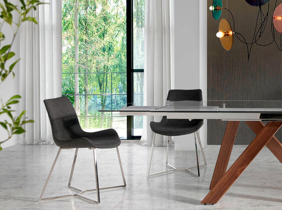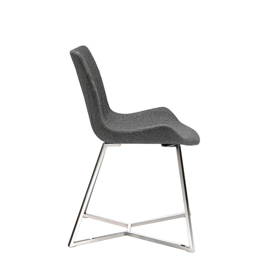 Upholstered gray fabric dining chair 4009 Angel Cerd S.L.Modern design dining chair upholstered in gray fabric. An avant-garde and contemporary style chair with an original structure of 22 micron chrome steel legs. Its 25kg / m3 polyurethane foam seat and enveloping design will bring that unique, different and personal style, as well as the greatest comfort to your dining room. STYLE: This elegant dining room chair with a modern design will provide the different and sophisticated touch that you are looking for in your home, faithful to the latest trends in decoration. MULTIESTANCE: Versatile and functional, its design allows it to fit into any type of living room or dining room, becoming the protagonists of the room. QUALITY: All our dining chairs are made with the highest quality materials, being a guarantee of durable and functional furniture. DECORATION: Due to its original design and its soft fabric upholstery, you will get the different and distinctive touch you are looking for in your dining room. COMFORT: The size of its seat and its 25kg / m3 polyurethane foam padding will allow you to have maximum comfort, without neglecting the highest trend.
