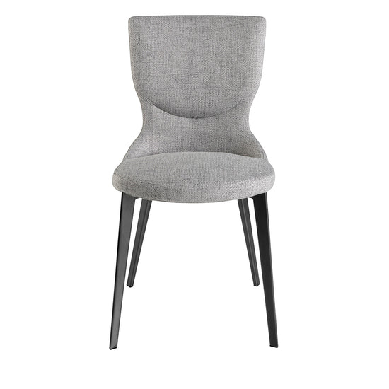 Modern design chair with seat and back upholstered in grey fabric. Its anthracite grey metal stainless steel legs with an avant-garde yet timeless style will make it a must-have for your kitchen or dining room.