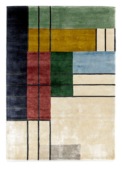 Hand tufted using 100% bamboo silk, with a thickness of 12 mm and is available in sizes of 170 x 240 cm and 200 x 300 cm.