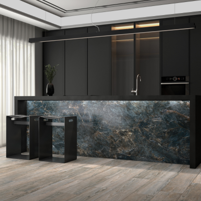 This is a porcelain tile product with LABRADORITE ROYAL BLUE marble finish which comes in slabs of dimension 3200X1600mm.