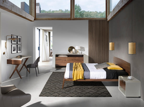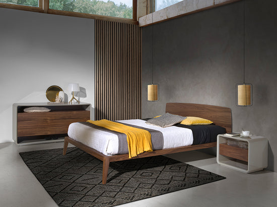 - DECORATION:The design of its structure makes it a key piece for your room. The natural walnut veneered wood of its drawer together with the glossy grey lacquered wood, make it provide the spaciousness and brightness you need in your rest area.