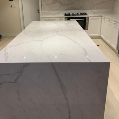 This is a porcelain tile product with MONTBLANC WHITE marble finish which comes in slabs of dimension 3200X1600mm.