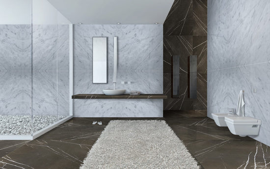The Pietra Grey marble slab is an excellent solution for floors and walls, both in the bathroom, kitchen, living room and bedroom. It is suitable for both indoor and outdoor use.