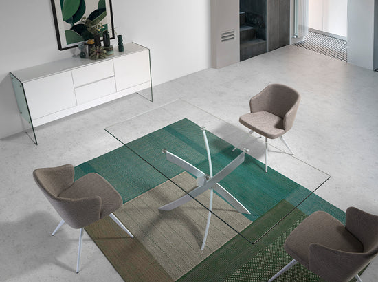 White sideboard glass model 3063 Angel Cerda S.L. Modern design sideboard made of DM lacquered in RAL9003 Glossy White and original 12mm tempered glass side legs and polished edges. A sideboard with an elegant and sophisticated style, perfect to bring the avant-garde and style touch you are looking for to your room, as well as keeping everything in order thanks to its large storage space with two doors and two drawers with soft-closing system and shelves. matching interiors, in MDF lacquered in RAL9003 Glossy White. STYLE: This elegant white sideboard with a modern design will provide the different and elegant touch you are looking for in your home, faithful to the latest trends in decoration. MULTIESTANCE: Versatile and functional, its design allows it to fit into any type of living room or dining room. QUALITY: All our sideboards are made with the highest quality materials, being a guarantee of durable and functional furniture. DECORATION AND COMFORT: Due to its design of straight lines, as well as its original glass sides, you will get the touch of modernity and spaciousness that you are looking for in your dining room. DIMENSIONS: Both for its size and for its large storage space with two doors and two drawers with soft-closing system and matching interior shelves, it is ideal for keeping everything in order and in its place.