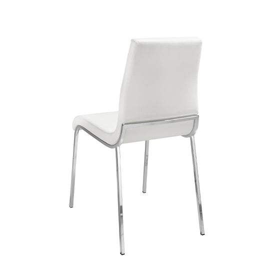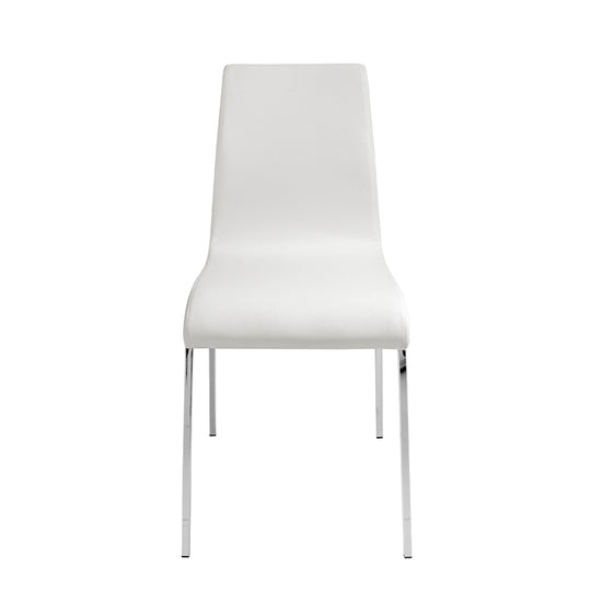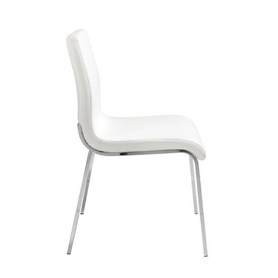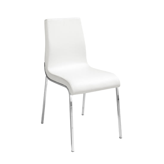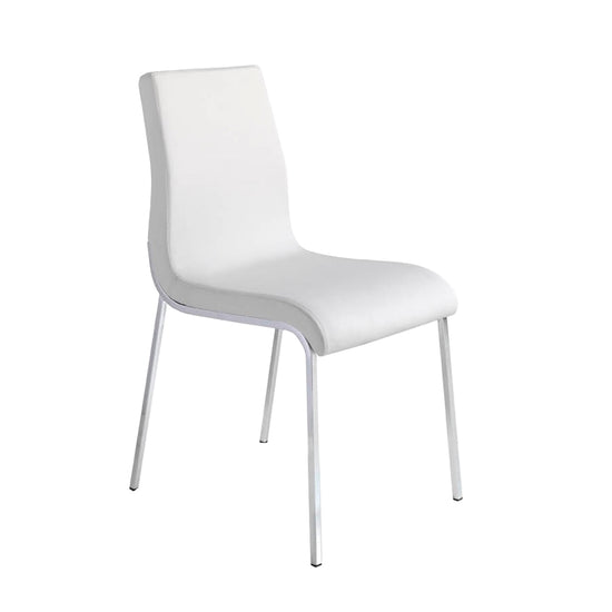 Upholstered leatherette dining chair 4025 Angel Cerd S.L.Modern design dining chair upholstered in white leatherette. An avant-garde and current chair with an elegant 22-micron chromed steel leg structure that will become a must-have in your dining room. Its backrest and seat in 25kg / m3 polyurethane foam gives it that unique style, as well as the greater comfort you need in your day-to-day life. STYLE: This original white dining chair with a modern design will provide the different and elegant touch you are looking for in your home, faithful to the latest trends in decoration. MULTIESTANCE: Versatile and multifunctional, its design allows it to fit into any type of living room, dining room or kitchen, becoming the protagonists of the room. QUALITY: All our dining chairs are made with the highest quality materials, being a guarantee of durable and functional furniture. DECORATION: Due to its simple design and its soft upholstery in white leatherette, you will get the different and distinctive touch that you are looking for in your dining room. COMFORT: The size of its seat and its 25kg / m3 polyurethane foam padding will allow you to have maximum comfort, without neglecting the highest trend.